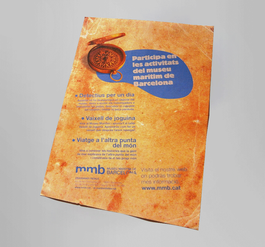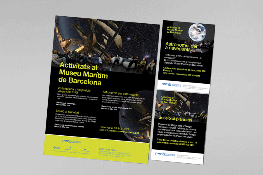 Diseño gráfico, gráfica publicitaria, promoción de las actividades del Museu Marítim de Barcelona. En colaboración con el departamento de comunicación del museo.